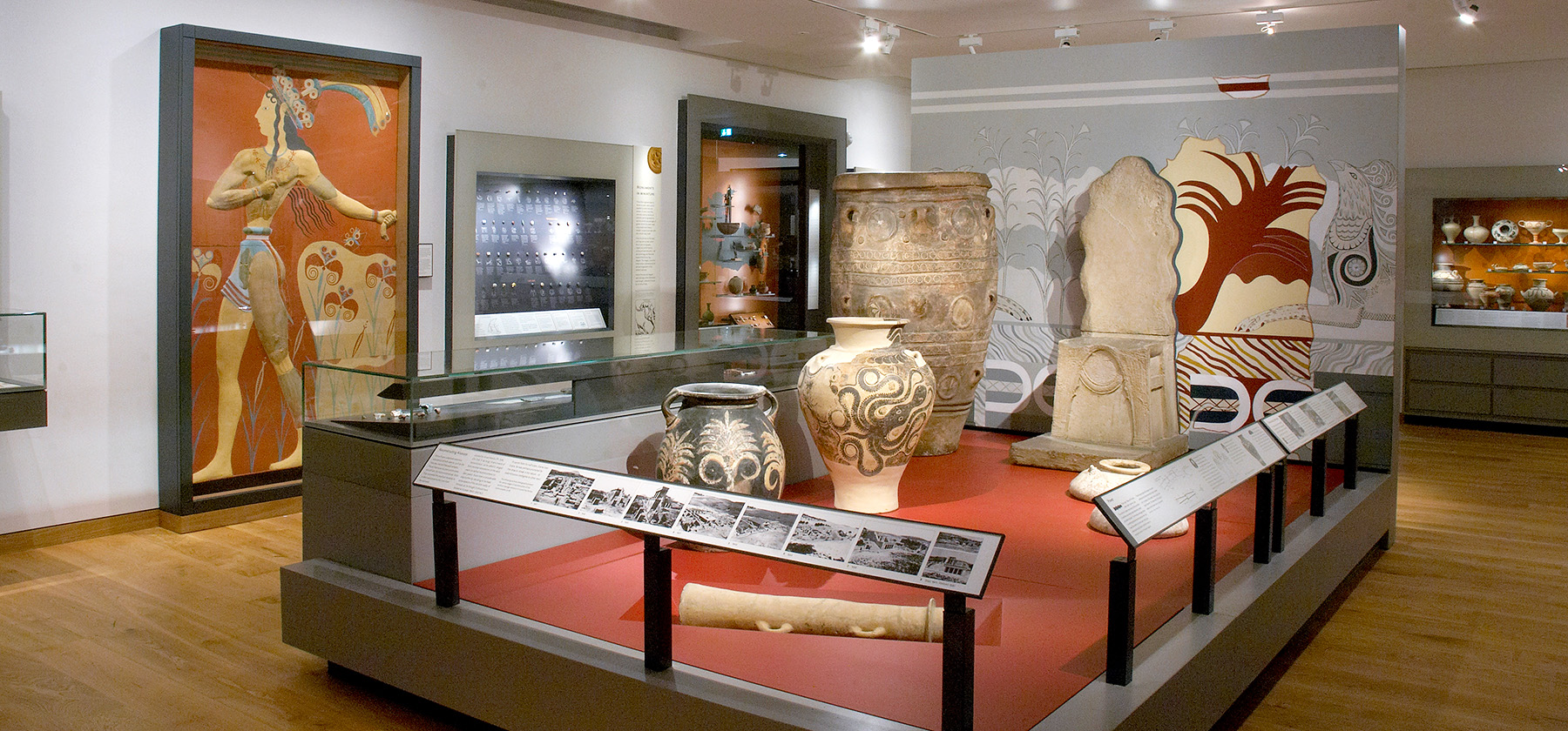 The Ashmolean’s Aegean collection, with more than 10,000 objects, is the largest and most important of its kind outside Greece. It was mostly formed by Sir Arthur Evans, Keeper of the Ashmolean (1884–1908) and one of the pioneers of archaeological research in the region, best known for his excavations of the so-called Palace of Minos at Knossos. A display shows notebooks, sketches and photographs from the digs of Evans and his colleagues.