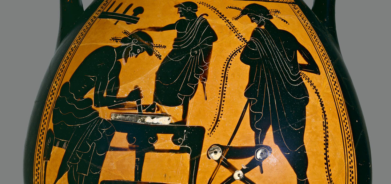 The Museum’s collection of Greek painted pottery is one of the finest in the UK and the decorations provide a fascinating snapshot of life in Ancient Greece. The pots are grouped around the gallery in themes including myths, sport and theatre, hunting and warfare, craftsmen and slaves, gods and goddesses, women and children, and symposia.